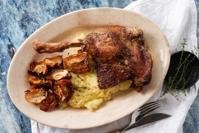 Baconba göngyölt sertés hagymamártással burgonypürével